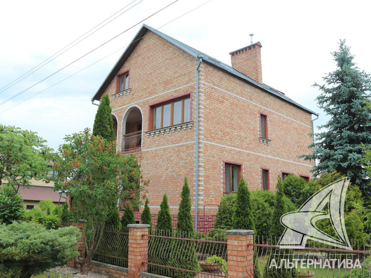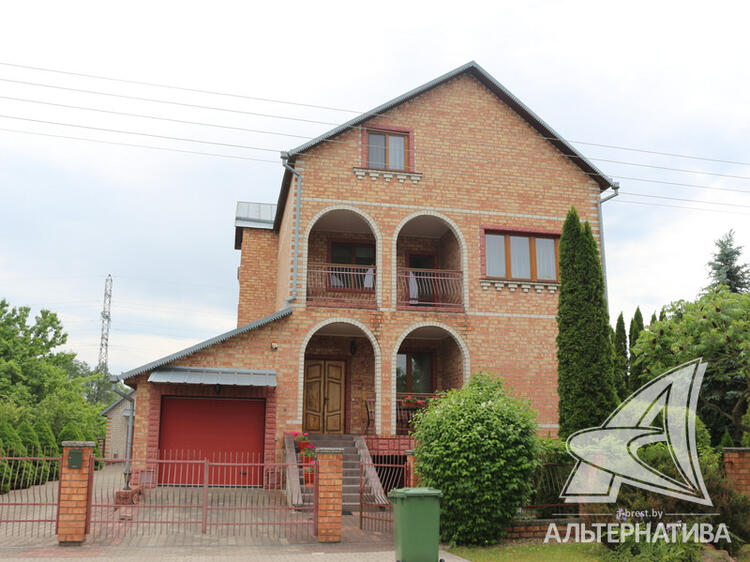 Жилой дом в Брестском р-не. 1992 г.п. 2 этажа, мансарда, цокольный этаж. Общ.СНБ - 283,7 кв.м, общ.- 283,7 кв.м, жил.- 173,1 кв.м, кух.- 15,8 кв.м. 9 комнат, высота потолка - 2,87 м.