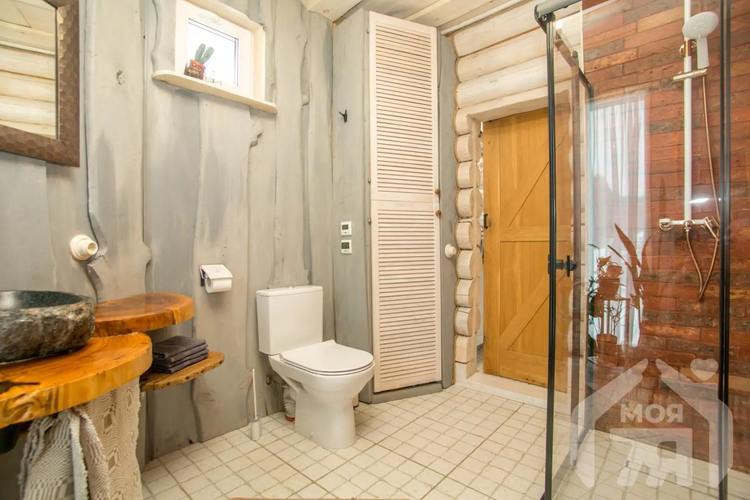 -В доме есть сауна, сделаны тёплые полы, есть выход на террасу. Рядом установлен банный чан - формат, который особенно ценят гости в любое время года.