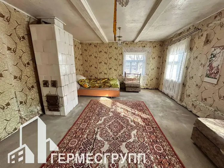 В доме расположены: 2 входных тамбура, кухня, 4 жилые комнаты, проходная. В доме есть электричество, центральный водопровод, печное отопление. По всему дому залиты стяжки.