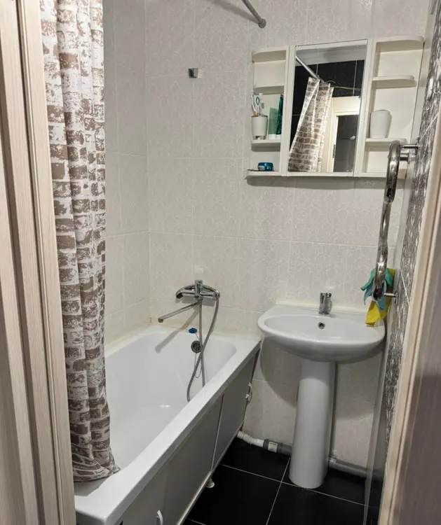 В комнате обои, потолок натяжной. Санузел и ванная комната разделены, произведена замена труб, пол и стены выложены плиткой.