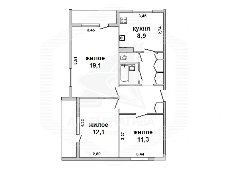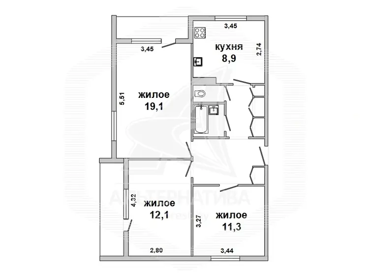 3 комнаты