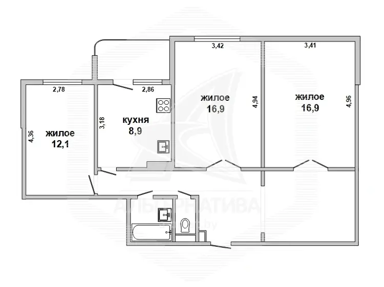 3 комнаты