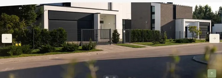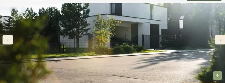 Архитектура дома подчеркнута строгими линиями, контрастными фасадными решениями и крупными витражными окнами. Потолки высотой до трёх метров усиливают ощущение объёма, а панорамное остекление наполняет внутренние пространства естественным светом и визуально расширяет связь с окружающим ландшафтом. Раздвижные стеклянные двери ведут непосредственно на просторную террасу — идеальное место для утреннего кофе, встреч с друзьями или вечернего отдыха под открытым небом.