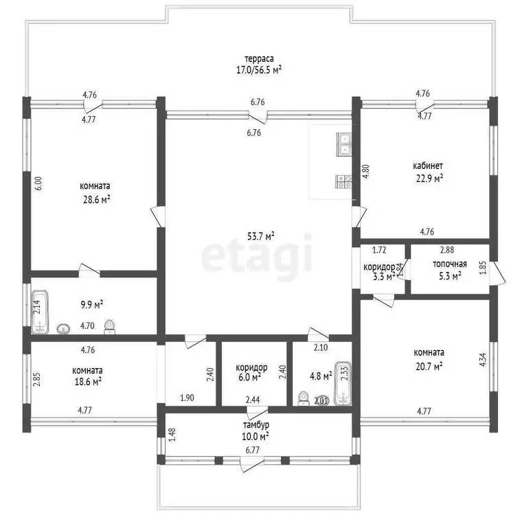 Этажность – 2 жилых этажа (на первом этаже сан. узел).
