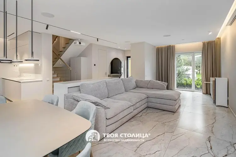 Уникальное предложение!Двухуровневый таунхаус в оригинальном проекте Зелёная Гавань.Лаконичный архитектурный стиль в живописном месте.Дизайнерский ремонт, изысканный интерьер, отделка премиум-материалами.Квартира полностью меблирована и оснащена бытовой техникой — все продумано до мелочей и сделано со вкусом.Кратко охарактеризовать квартиру можно тремя словами: стильно, качественно, комфортно. Просторная гостиная с панорамными окнами и уютной зоной отдыха;Кухня оснащена премиальной техникой;Мастер-спальня с приватной гардеробной и ванной комнатой;Дополнительные спальни и кабинеты, идеально адаптированные под ваши потребности;Дизайн интерьера: светлые тона, натуральные материалы, продуманные детали;Технологичное удобство: продуманная звукоизоляция, системы умного дома с централизованным управлением, приточно-вытяжная вентиляция с рекуперацией воздуха, подогрев пола, автономное отопление (газовый котёл).ЖК зелёная Гавань - это уникальный проект, который сочетает в себе преимущества загородной жизни и удобство городской инфраструктуры.Уютные зоны барбекю, авторские детские игровые зоны с тематическими горками, качелями и спортивными комплексами, персональные беседки с розетками- идеальный уголок для отдыха или работы на свежем воздухе. Сердце квартала- просторная площадь с амфитеатром и живописным фонтаном. Парк с площадкой для йоги и воркаут-зоной.Дополнительную безопасность проживанию обеспечивают круглосуточные камеры наблюдения с доступом к камерам с мобильного телефона в любой точке мира.Биологический заказник «Стиклево», поля для гольфа, асфальтированные дороги, велодорожки, зеленые аллеи, спортивные центры, школы, детские садики, магазины, фермерский рынок гарантируют мультикомфортное проживание. ООО "Твоя столица", УНП 101136973, лицензия №02240/15 от 17.02.05г.