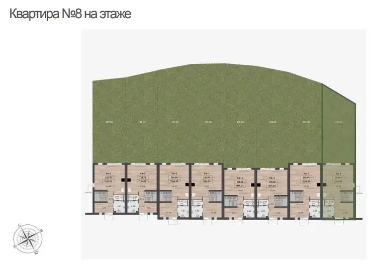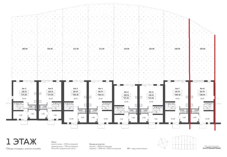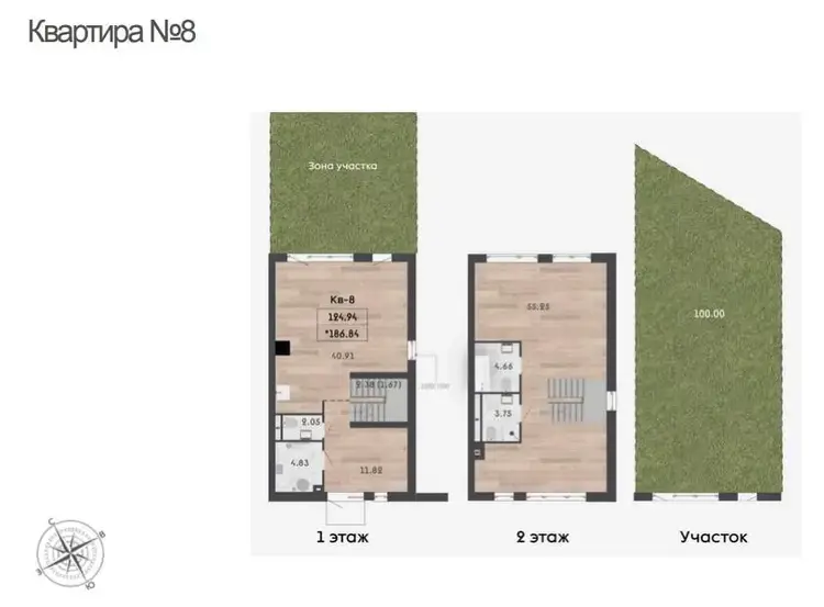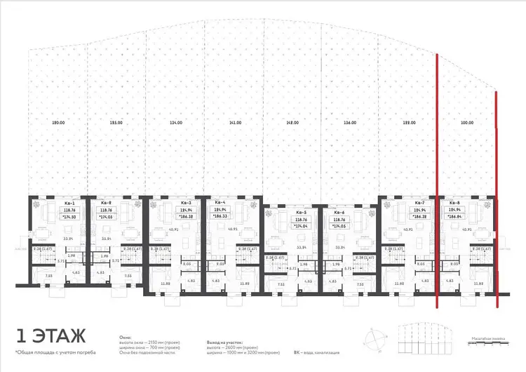 Благоустроенный участок для каждой квартиры от 100 до 142 м2.