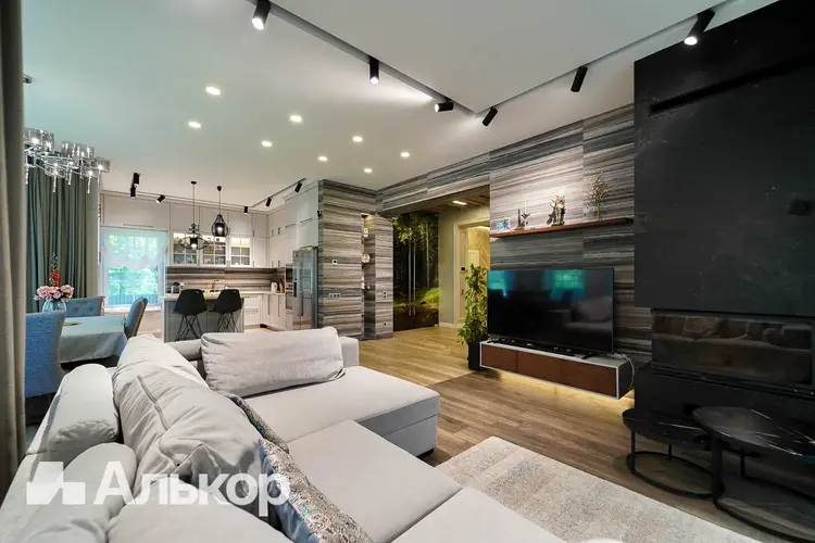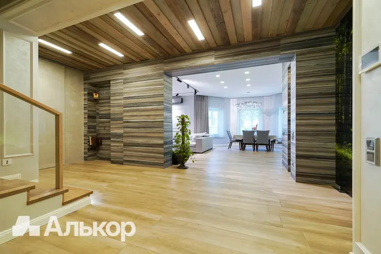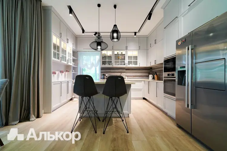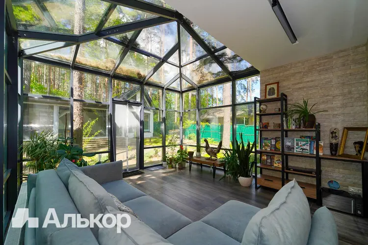 Рациональная планировка: 4 жилые комнаты, рабочий кабинет, просторная кухня-гостиная (техника Bosch, камин на дровах), 3 с/у (итальянская сантехника), просторный гараж (автоматические ворота), а также восхитительный зимний сад.
