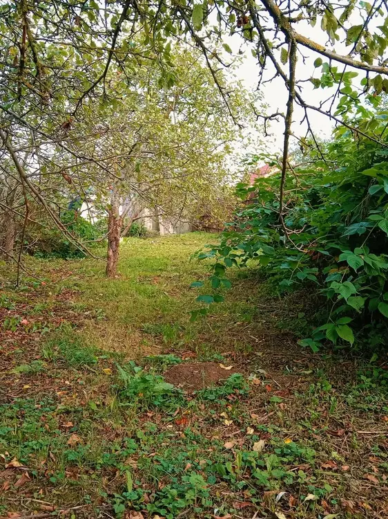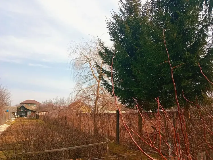На участке есть плодовые деревья, кустарники.