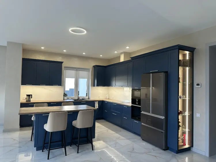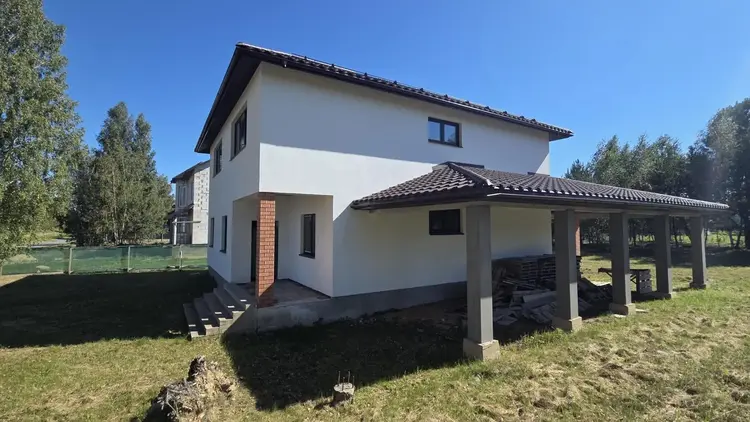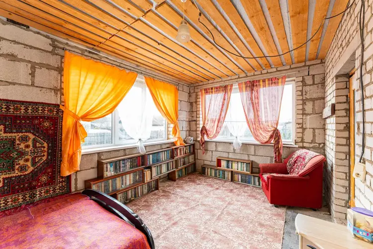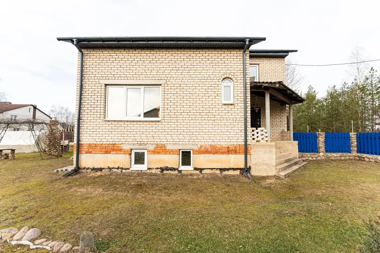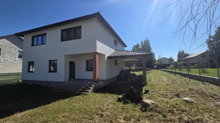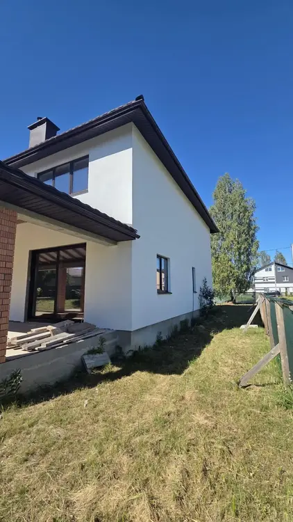 В доме – большая гостиная, кухня 16 кв.м. с выходом на веранду и задний двор, дополнительно 2 отдельные комнаты, санузел раздельный, прихожая. Год постройки 2019 г. Материал стен – блоки, обложены кирпичом. Окна – современные энергосберегающие стеклопакеты.