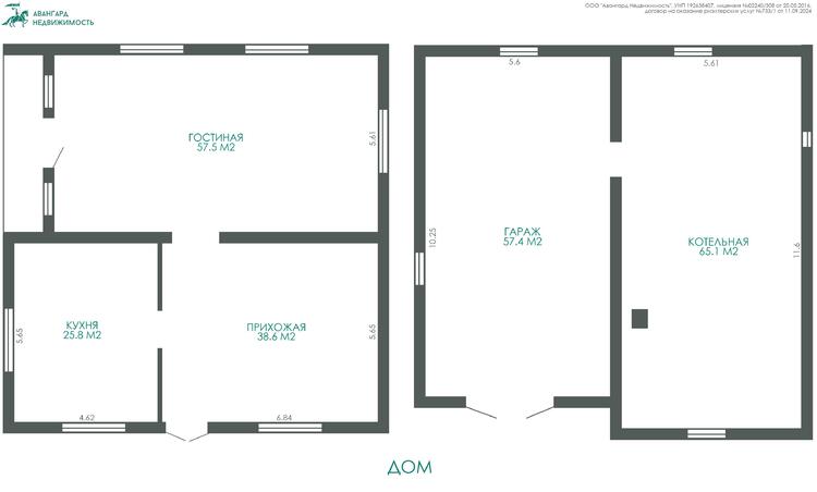 Цокольный этаж состоит из гаража 57.4 м2, на 2 машины, просторной котельной и совмещенным санузлом.