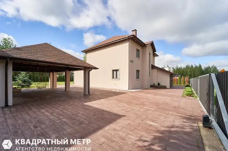 • На территории — гараж на 2 машины, паркинг на 5, навес (с возможностью трансформации), а также площадка под теннисный корт, мини‑футбольное поле, да хоть под свадьбу или корпоратив на 200 человек.