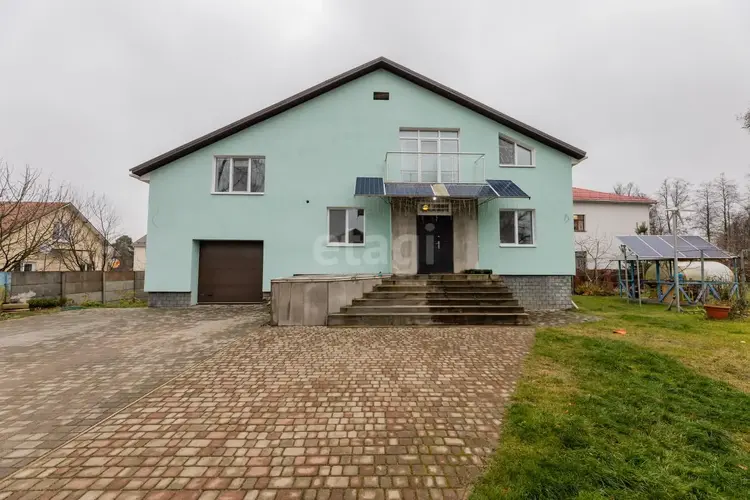 Ухоженная территория с теплицей, деревьями и аккуратной тротуарной плиткой создаёт атмосферу загородного уюта. Закрытая территория и гараж обеспечивают безопасность и спокойствие.