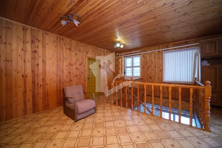 На первом уровне вместительная гостиная зона, две большие комнаты, кухня, раздельный санузел, кладовая. Широкая деревянная лестница удобная, не скрипит.