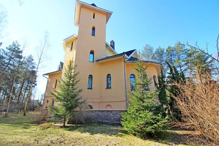 Коттедж построен с использованием элементов замкового стиля, характерных для Европы. Дом имеет 6 уровней (формально 3 этажа) и большое подвальное помещение с котельной, санузлом - прачечной.