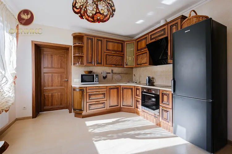 Кухня (на 1 этаже) оснащена полным комплектом встроенной техники импортных производителей. Установлена качественная входная и межкомнатные двери.