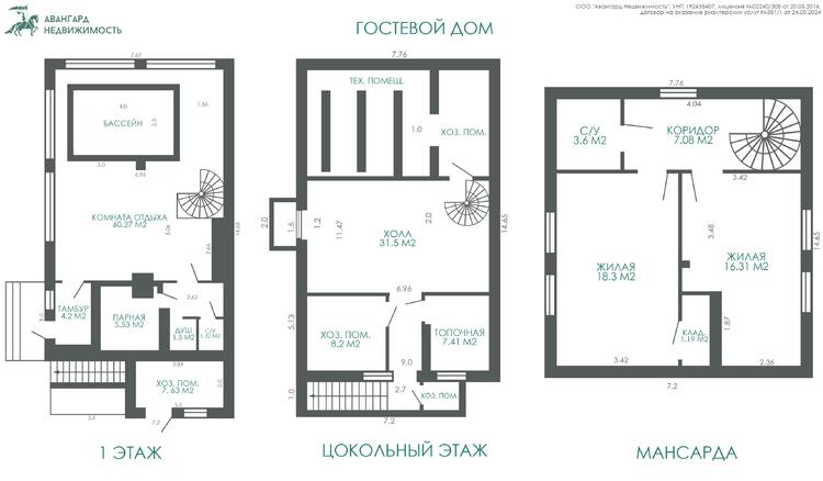I уровень гостевого дома: комната отдыха с бассейном (бассейн с подогревом), парная с душем и санузлом, хозблок с отдельным входом со двора.