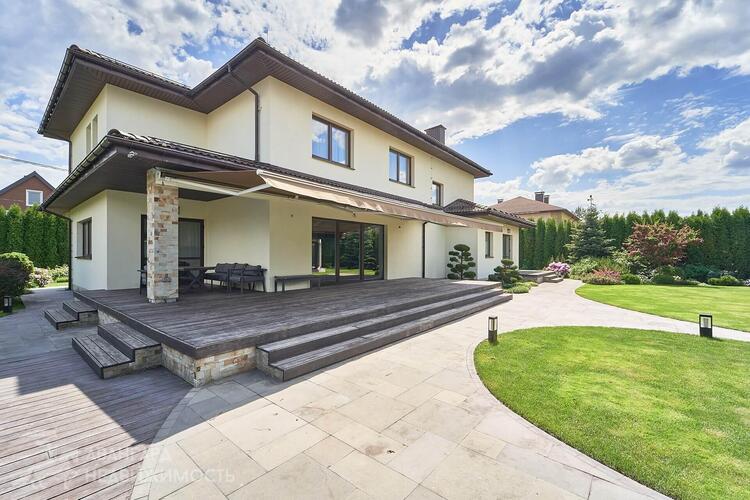 Общая площадь основного дома по СНБ – 335.6 м2. Дом 2014 года постройки. Внешние и несущие стены из блоков, оштукатурены снаружи. Перекрытия – железобетонные. Фундамент – монолитная бетонная плита. Крыша – цементно-песчаная черепица. В отделке и наполнении дома использовались высококачественные современные материалы, техника и оборудование премиум сегмента известных мировых брендов (Miele, Kuppersbusch, Villeroy&Boch и др.). Гостевой дом 2018 года постройки. Внешние и несущие стены из блоков. Фасад оштукатурен, частично отделан лиственницей. Крыша – цементно-песчаная черепица.