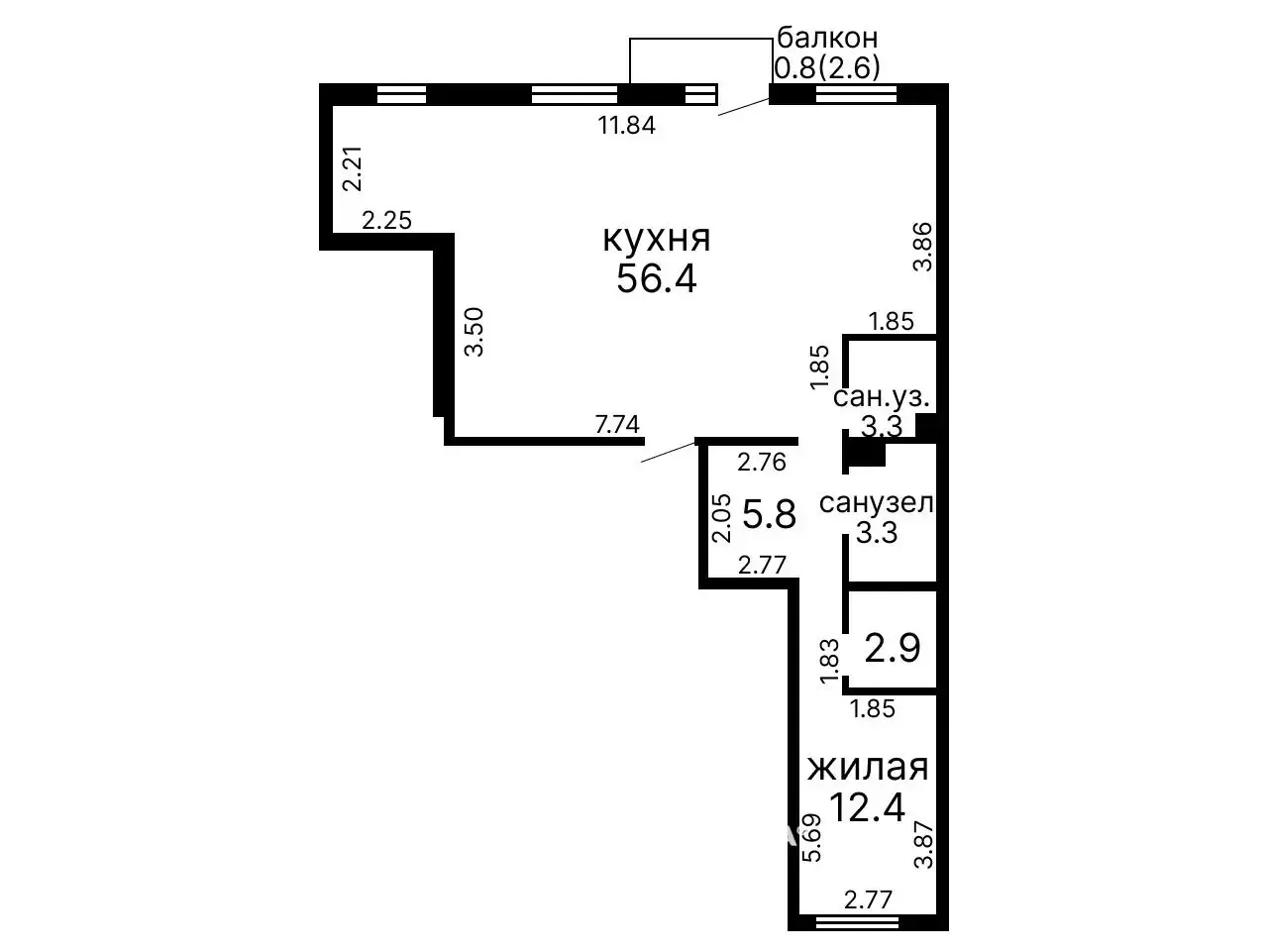 - ✔ Общая площадь по СНБ - 84,2 м²