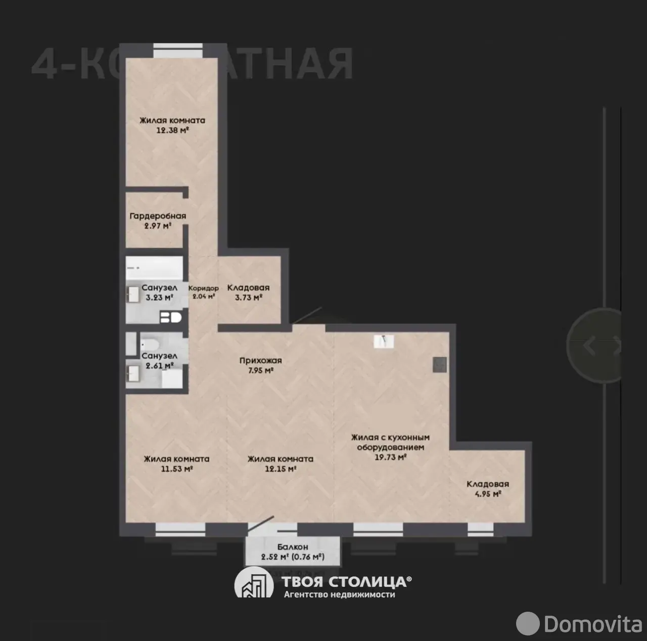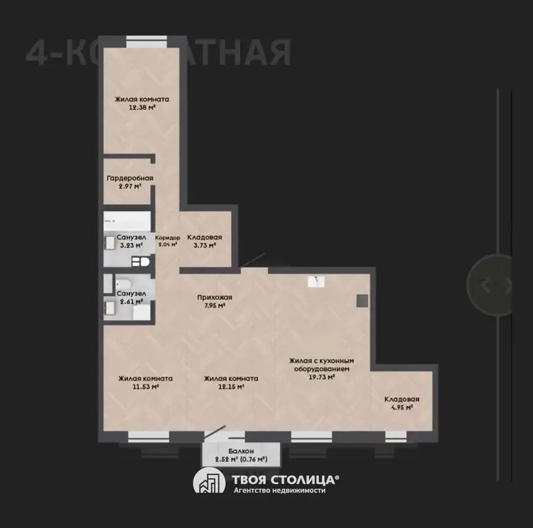 - ✔ Кладовая/кабинет с окном ~5 м² - идеальна для работы или хранения