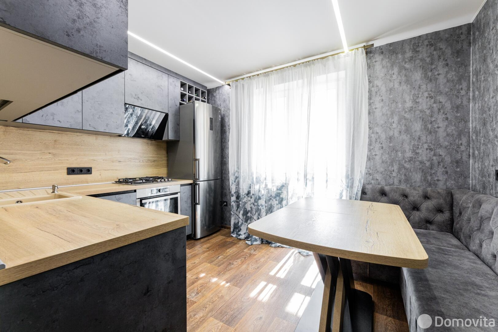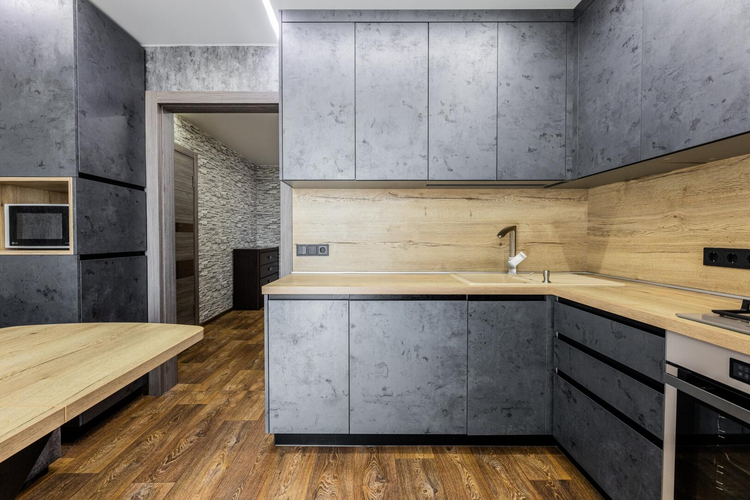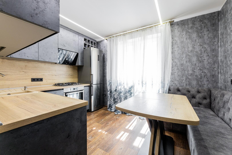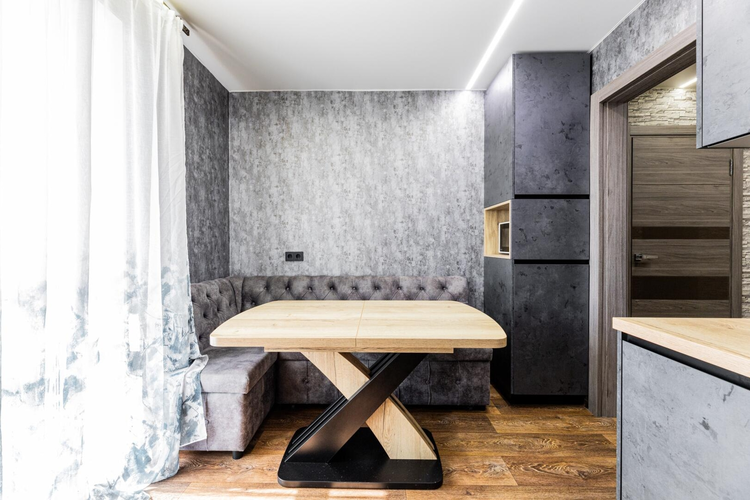 - Встроенная мебель в едином стиле (кухня и комната)