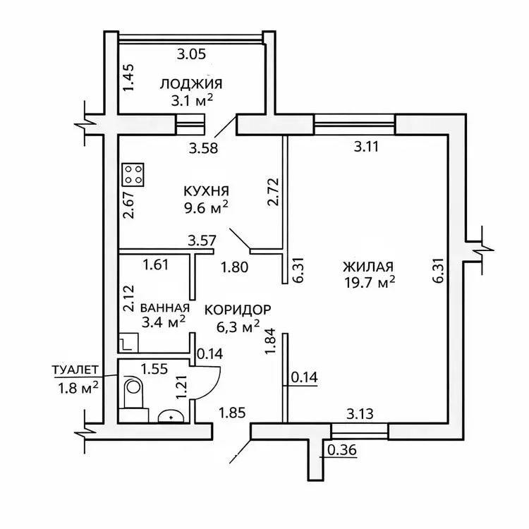 Площадь (СНБ): 43,9 м2