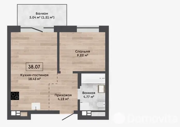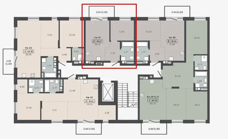 Площади квартир от 37,62 до 110,90 кв.м — от студий до просторных 3-комнатных квартир.