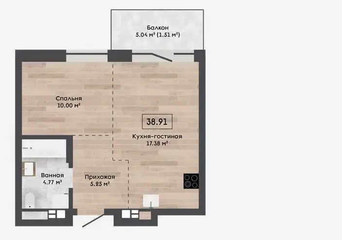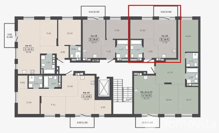 Площади квартир от 37,62 до 110,90 кв.м — от студий до просторных 3-комнатных квартир.