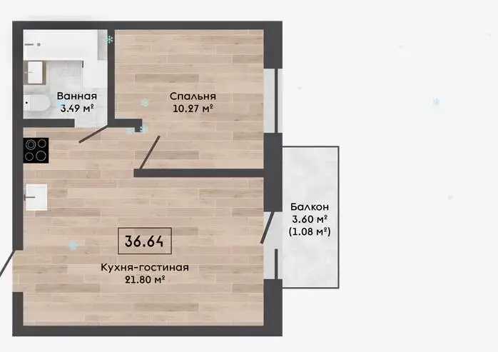 Квартира с отделкой Basic с кухней и кладовой 3,49м2.