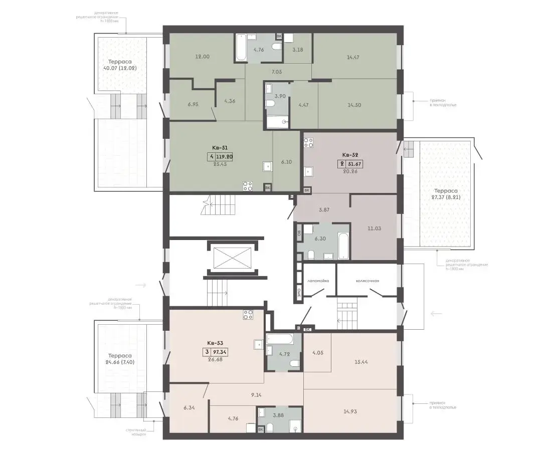 - Уникальные форматы квартир: варианты с отдельными входами, участками и расширенными террасами