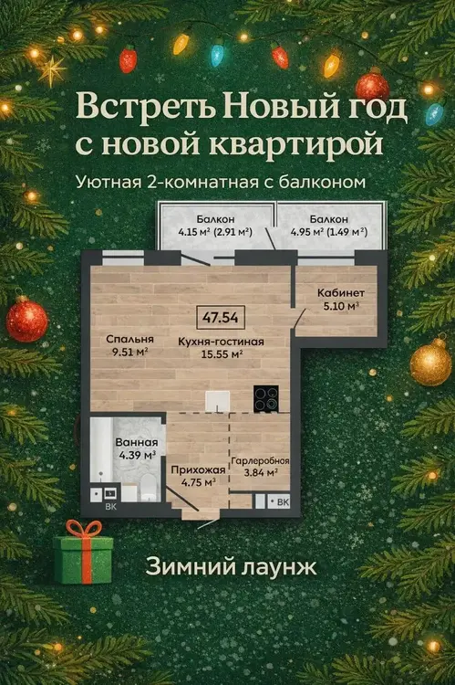 • Формат: евродвушка - просторная кухня-гостиная + комната;