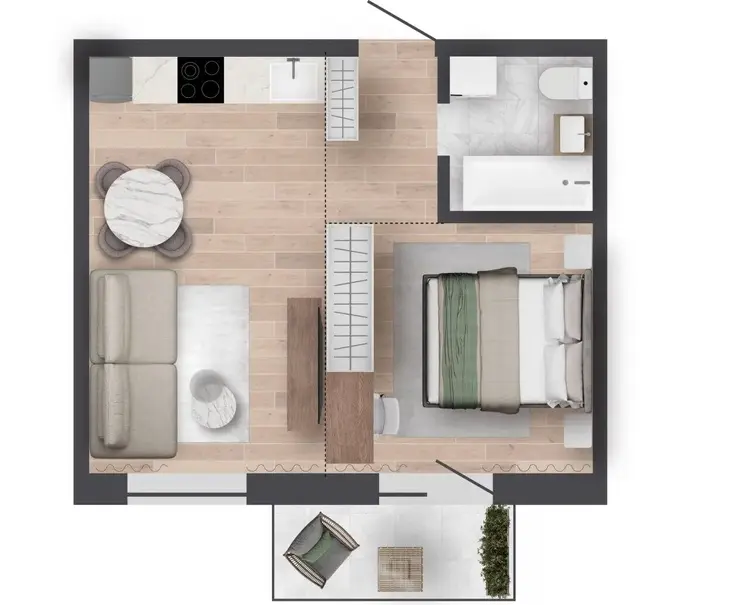 · Общая площадь: 36.5 м2 (СНБ — 37.3 м2)