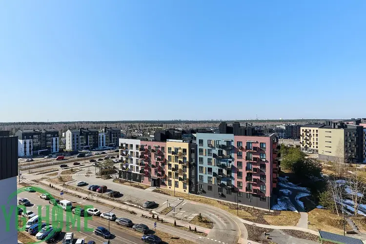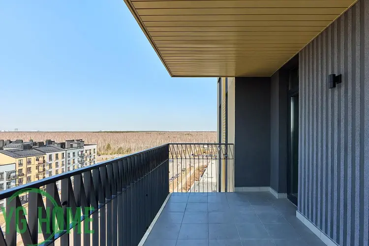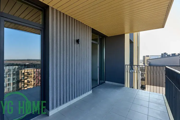 Одними из главных достоинств этой квартиры являются: роскошная терраса/балкон (10,7 м2), с красивым видом на прилегающую территорию, а также высокие потолки (2.99 м2).