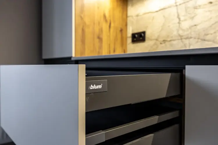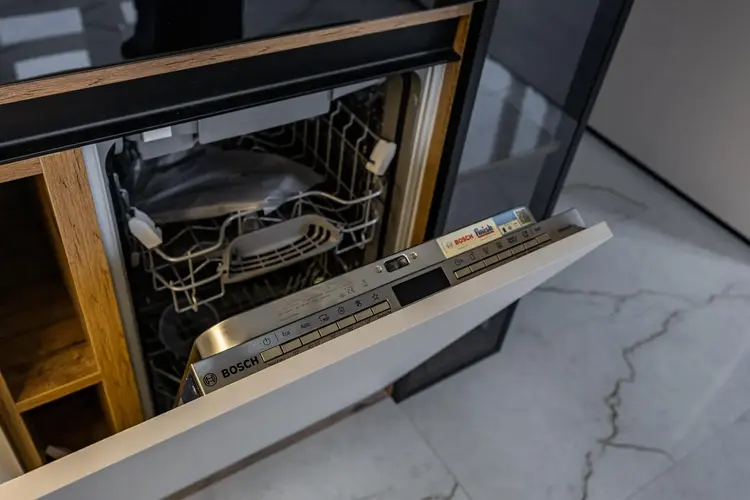 ∙ Встроенная кухня (ламинированный МДФ, столешница из натурального камня) со всей техникой (все новое, на гарантии): индукционная плита Bosch, вытяжка Bosch, встроенный холодильник Liebherr, встроенная микроволновая печь Bosch, посудомоечная машина Bosch.