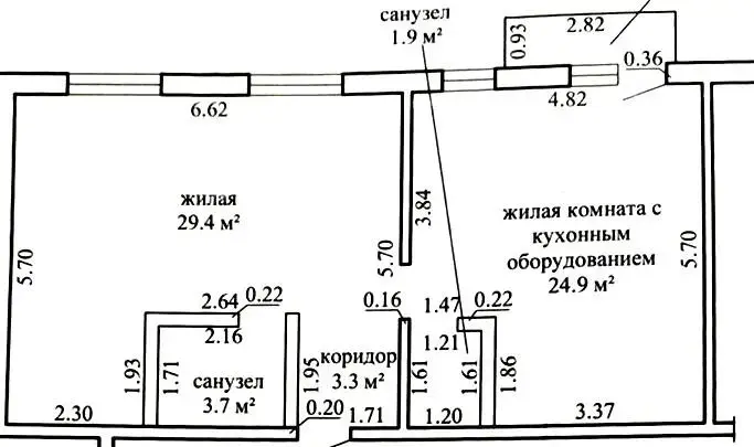 · Просторная планировка: Общая площадь 64 кв. м по СНБ включает одну отдельную комнату, светлую кухню-гостиную 24,9 кв. м, ванную и два санузла.