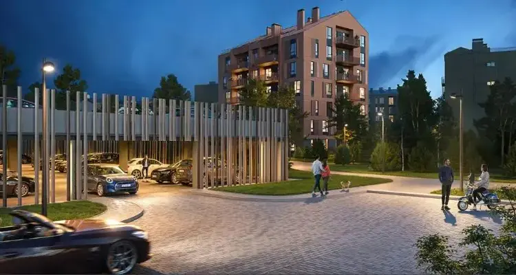 -Двор здесь закрытый, а парковка вынесена за внешний периметр.