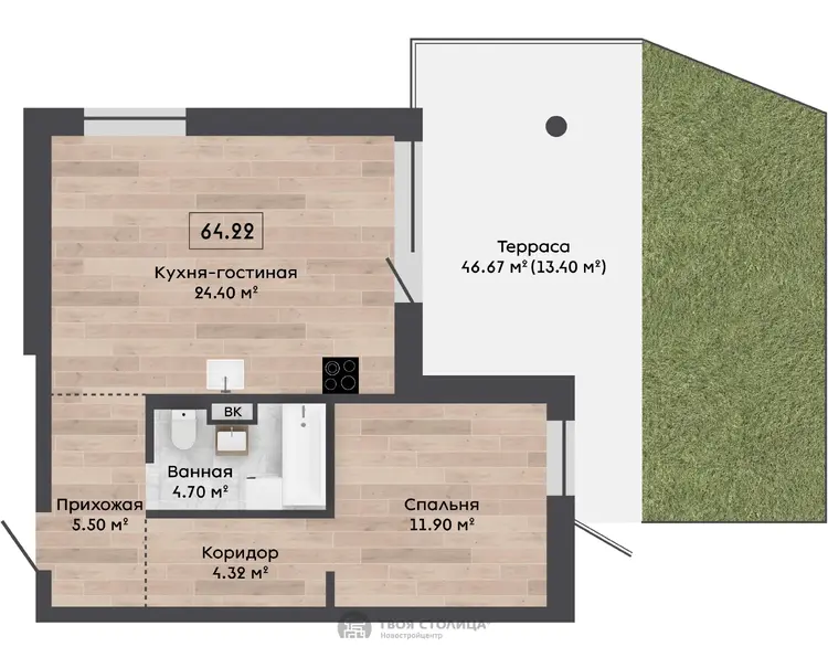 Квартира находится в доме Урбан-вилла 13.13 в квартале «Гольф-квартал», жилой комплекс «Зеленая гавань».