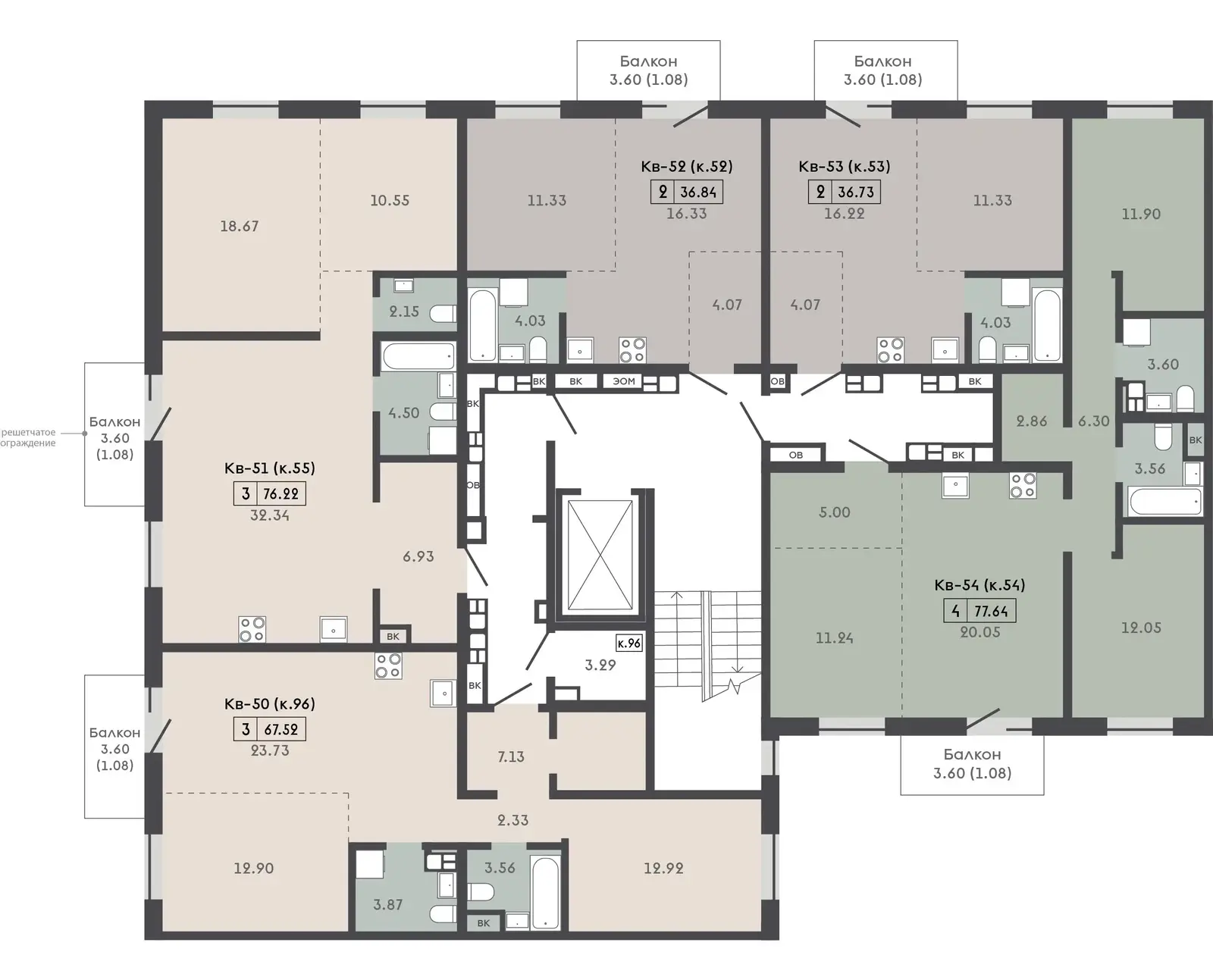 • Все балконы открытые