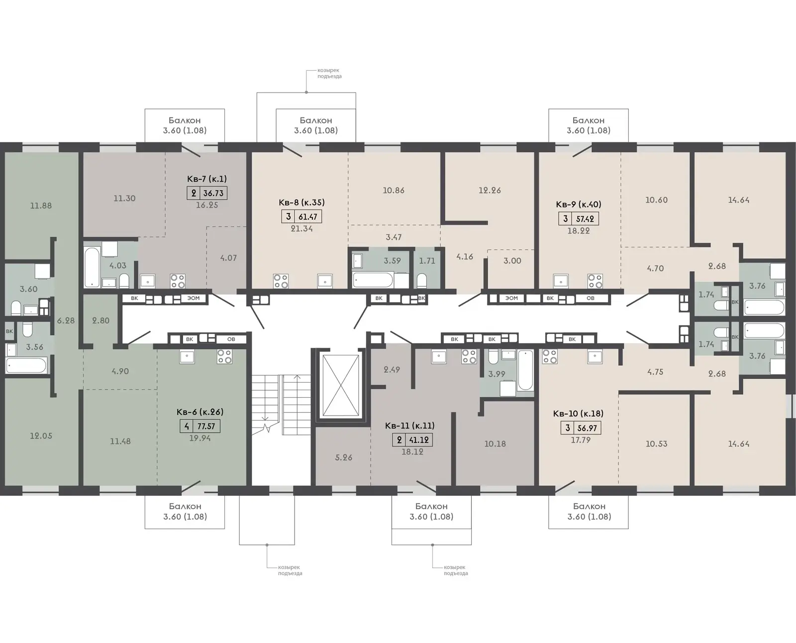• Все балконы открытые
