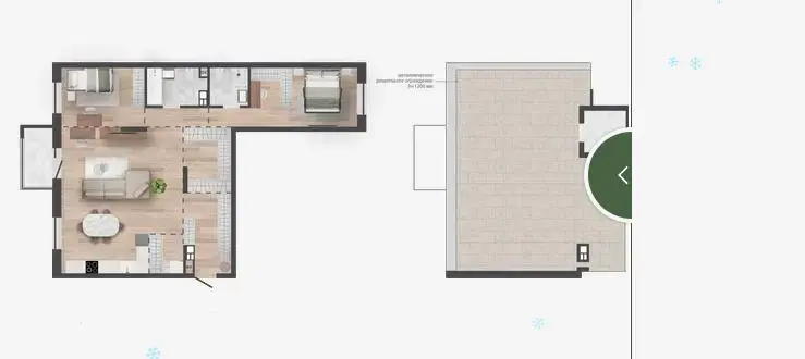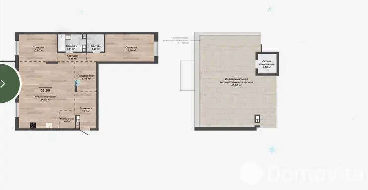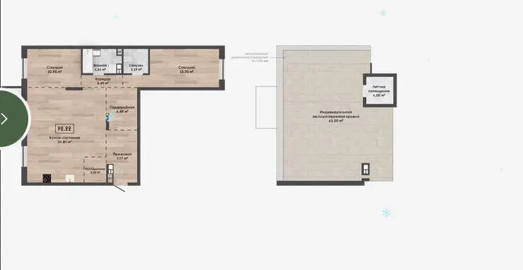 Квартира с террасой на крыше - 63,00м2.