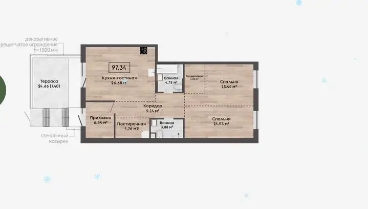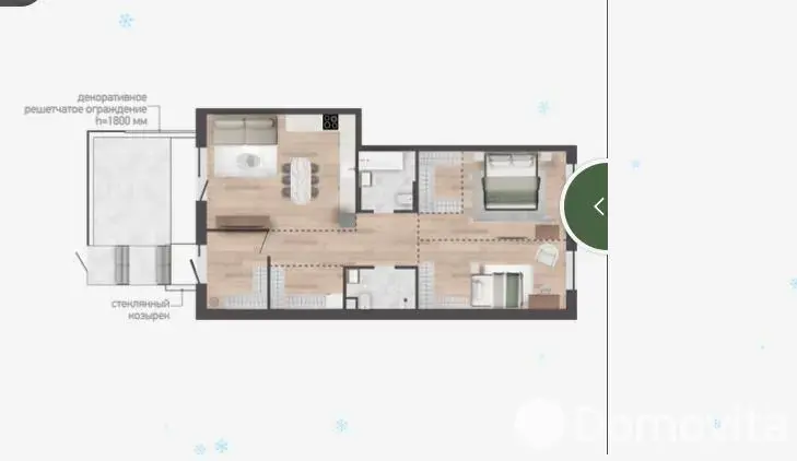 С двух сторон обрамлен зеленым коридором, обеспечивая жителям живописные виды из окон.