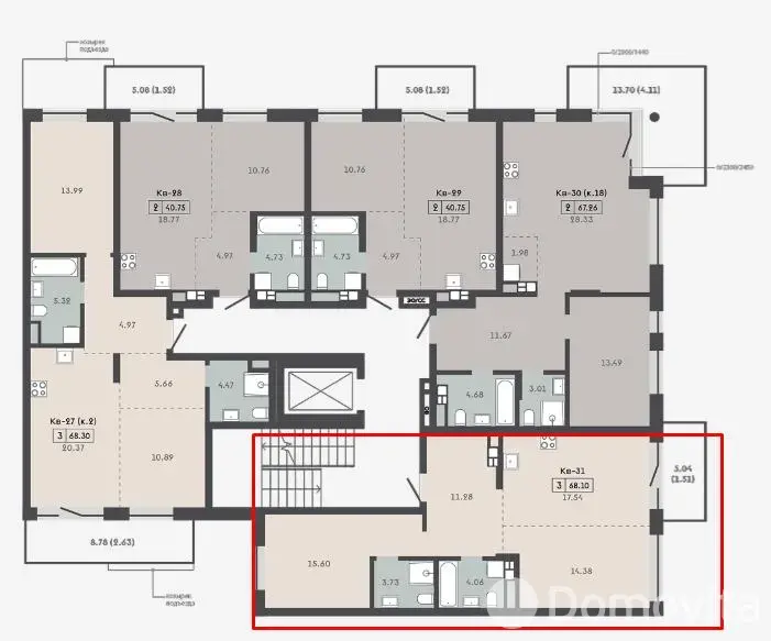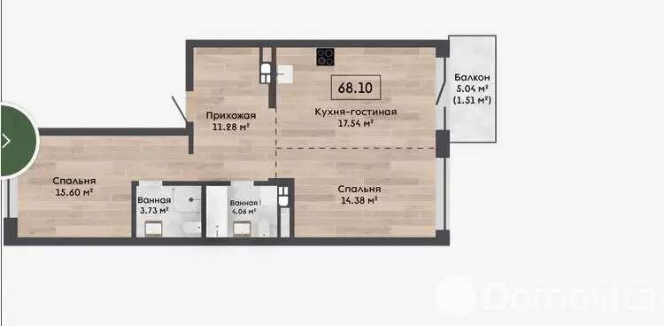 Площади квартир от 37,62 до 110,90 кв.м — от студий до просторных 3-комнатных квартир.