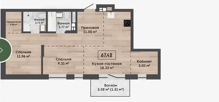 • Площади квартир от 37,62 до 110,90 кв.м — от студий до просторных 3-комнатных квартир.