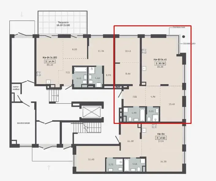 Квартира номер 25 с кладовой 5,78м2.