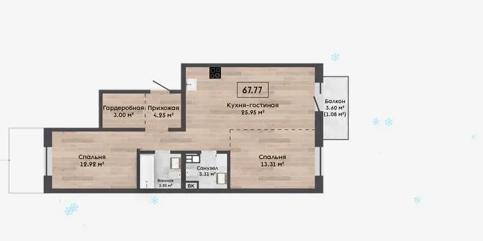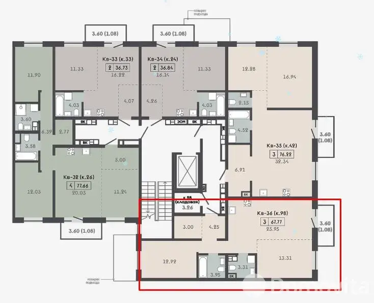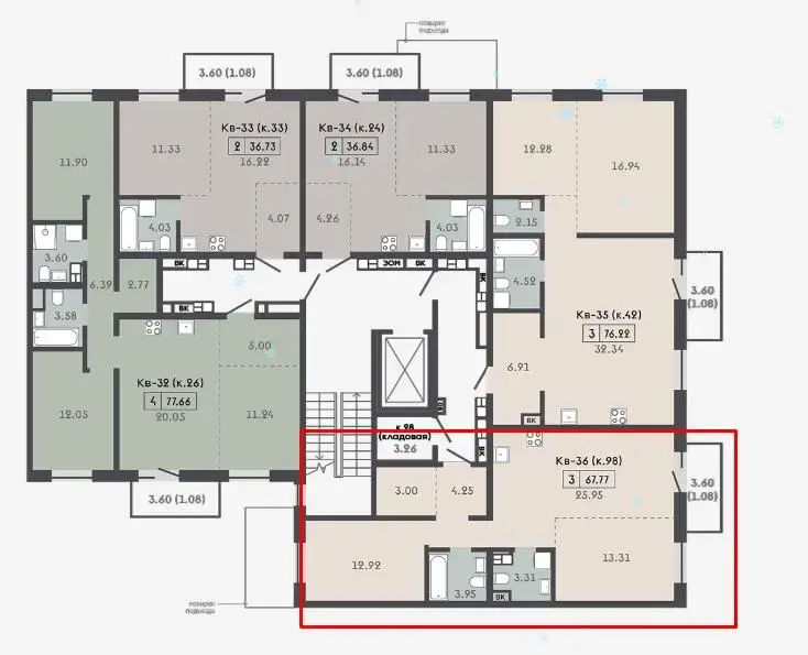 Квартира с кладовой 3,61м2.