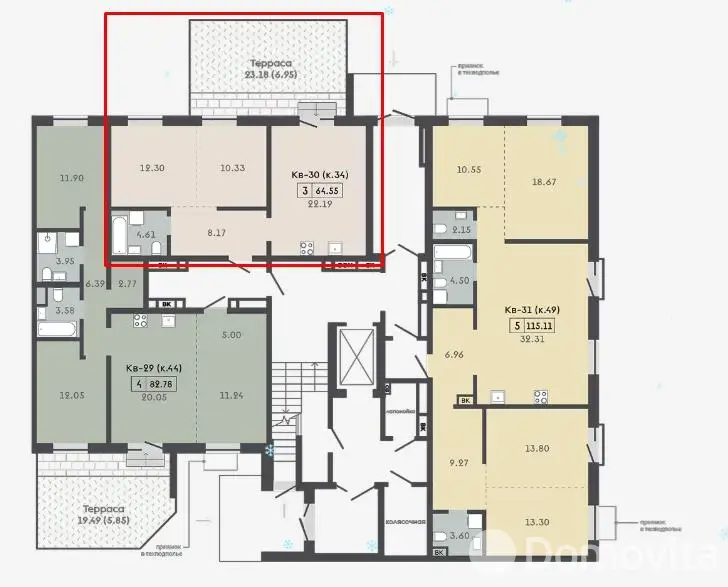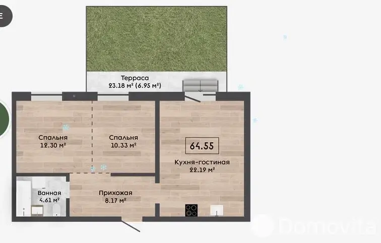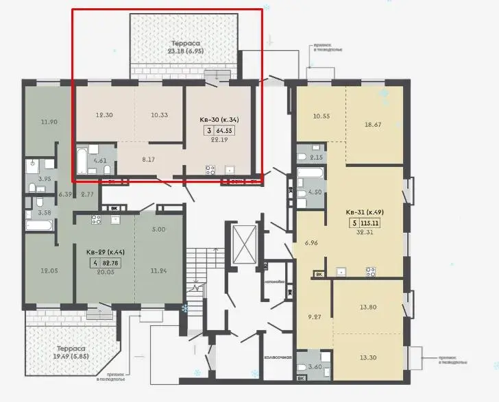 Квартира с террасой 23,18м2 и кладовой 3,37м2.
