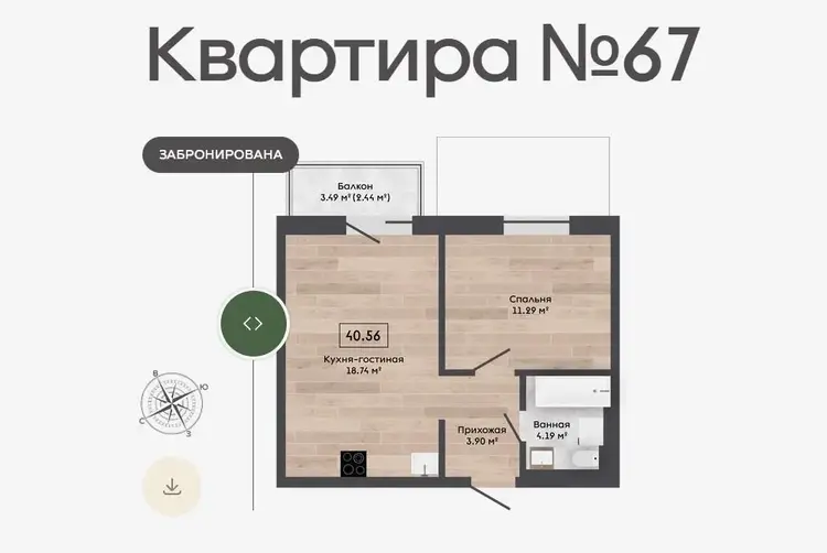 Квартира напрямую от застройщика!!! Кредит 13,75% на 20 лет с 01.10.2025 по 31.10.2025.