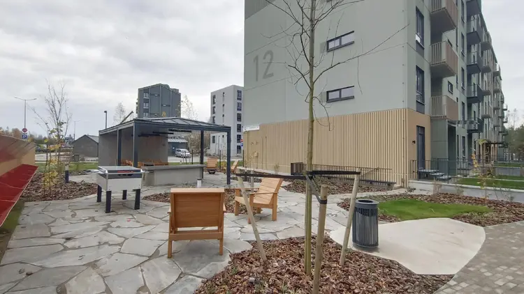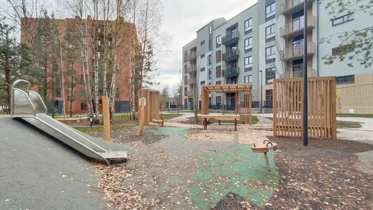 Во дворе предусмотрена детская площадка для детей возраста 1-7 года с зоной отдыха для взрослых под навесом. По территории двора располагается несколько зон для тихого отдыха, центральная оборудована кострищем.