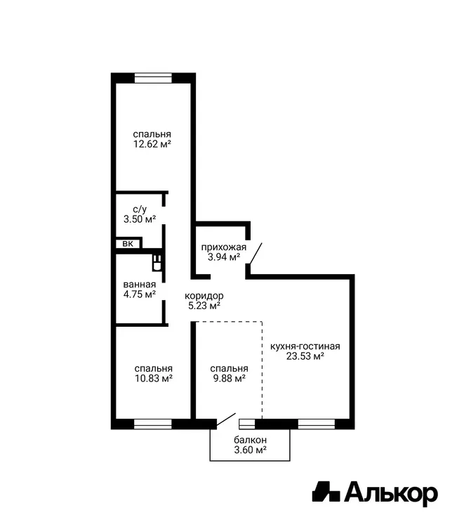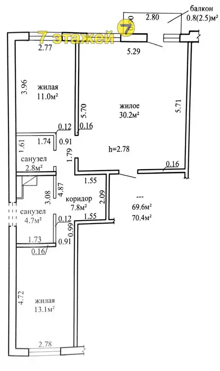 Планировка улучшенного типа: площадь по СНБ 70.4 м2, 2 раздельные жилые комнаты, 2 санузла, просторная кухня-гостиная с входной группой правильной формы площадью 30.2 м2, наличие гардеробной - позволят рационально использовать метры большой семье, выделить места хранения и оставить личное пространство каждому.