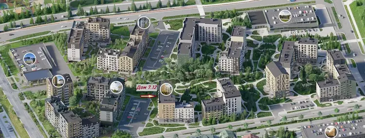 Ситихаус 7.4 в квартале Земляничная поляна – монолитный 3-подъездный дом с мансардными квартирами, террасами и лучшим видом на комплекс.