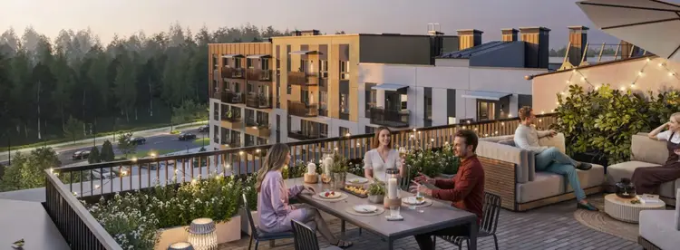 Внутреннее благоустройство двора будет создано из сохраненных лесных деревьев, к которым в дополнение будут высажены кустарники и многолетние травы.